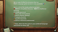 - September 14, 2023 by Lumiterra#Exploration, #Farming, #MMORPG, #Multiplayer, #Roguelike, #Singleplayer, #cozy gamesHey amazing gamers! 🎮✨ We're super thrilled to announce that our Multi-Language game version is now available! 🌍🎉 Here's a list of the newly added languages: 🇨🇳 简体中文 (Simplifi... Continue reading